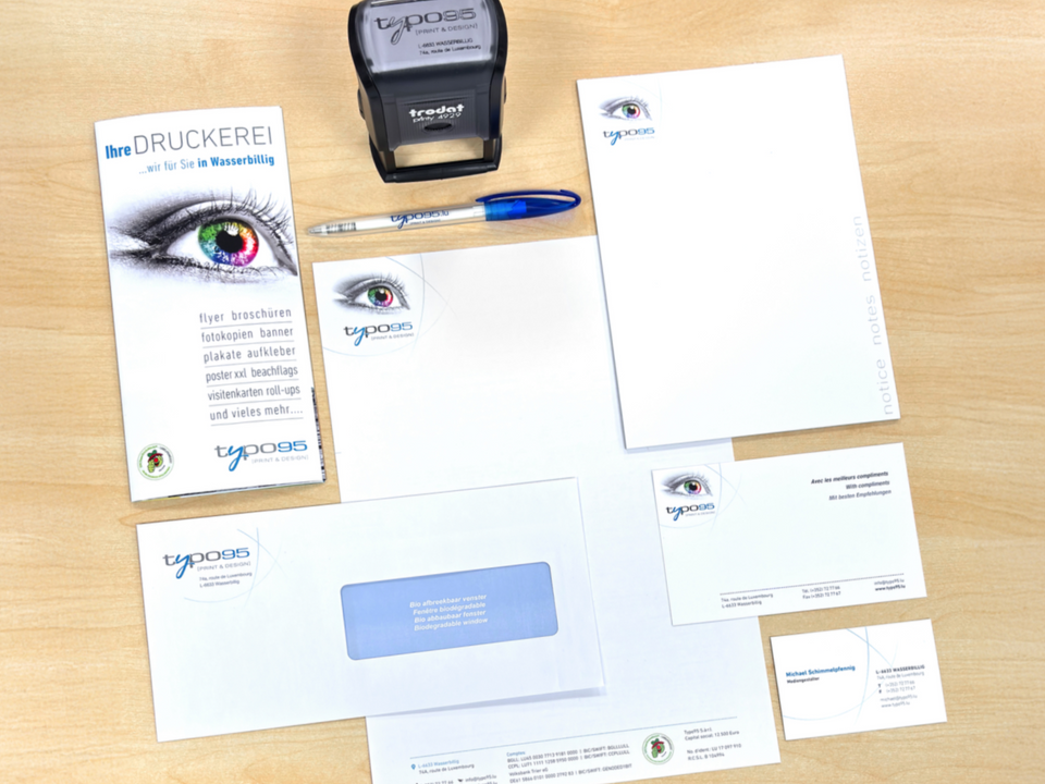Visitenkarten, Broschüren, Flyer/Faltflyer, Kataloge (klebegebunden oder geheftet), Briefpapier, Umschläge/Versandtaschen, Notizblöcke, Haftnotizen, Eintrittskarten, Einlassbänder, Mappen, Karten, Plakate, Sonderanfertigungen...